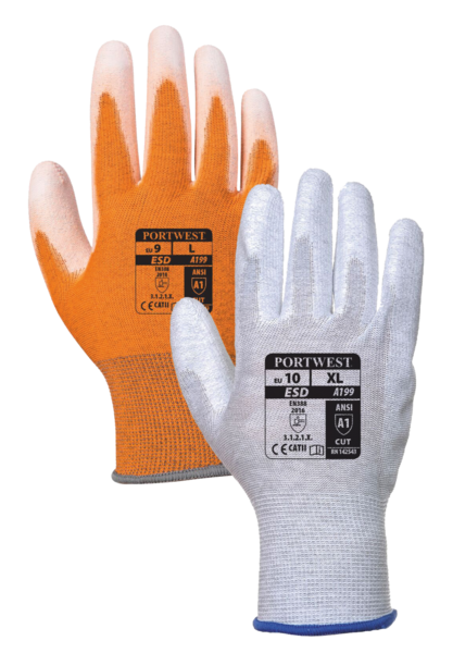 Antistatické rukavice PORTWEST - 13g nylon a uhlíková vlákna, která odvádí statickou elektřinu. PU dlaň, vynikající úchop. Pro antistatické práce, montáž elektroniky, testování a přesné práce.
