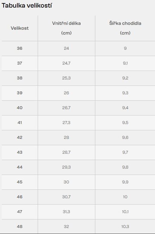 délka stélky v cm 26 26,5 27 28 29 29,5 30 30,5 31 32 33