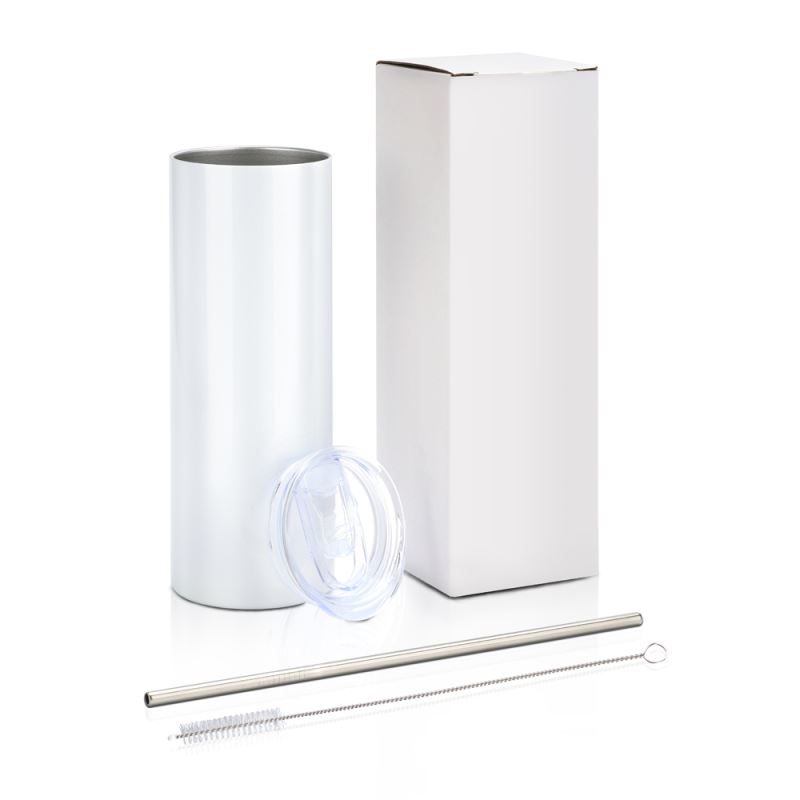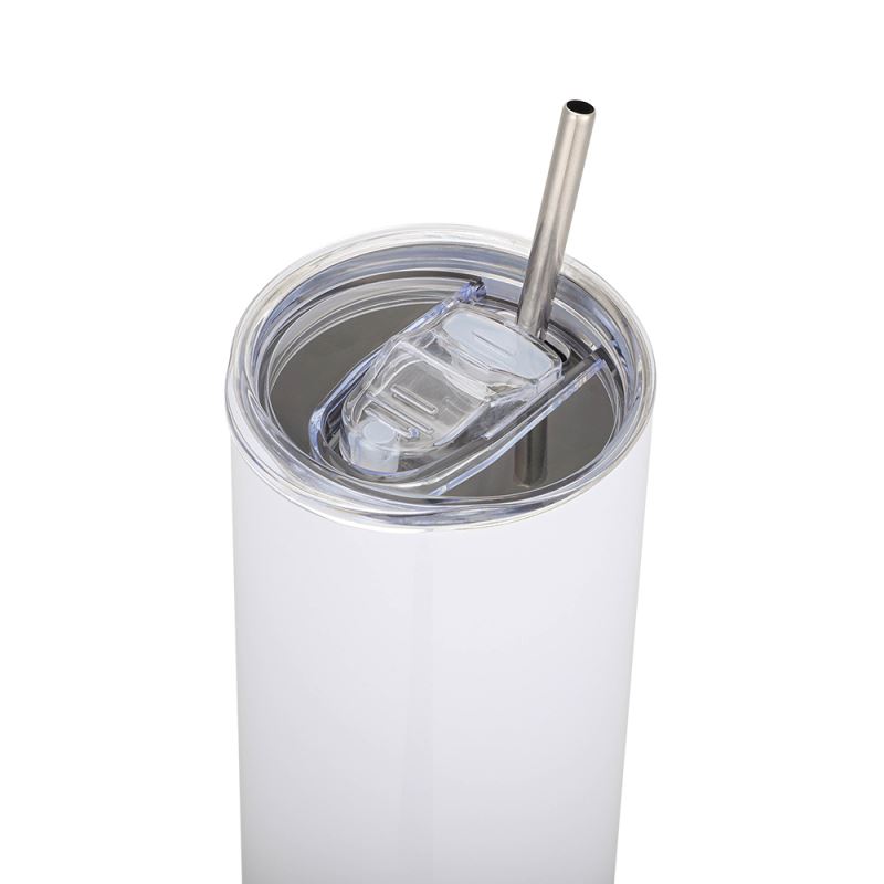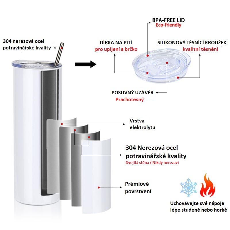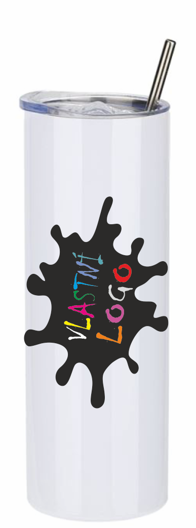 - Bílá nerezová láhev s čirým bezpečnostním uzávěrem s vlastním POTISKEM
