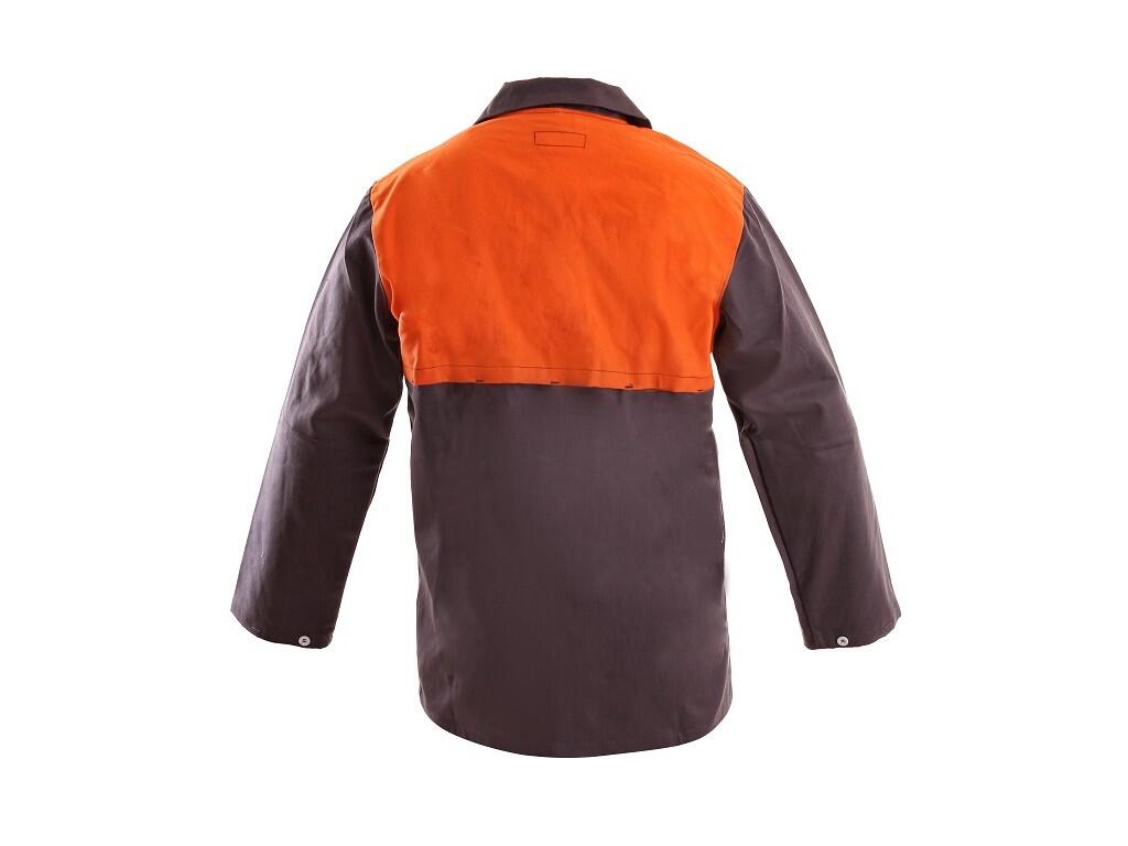 Pánský svářecký oblek s krytým zapínáním, se zvojenými lokty a náprsní kapsou. SE SPECIÁLNÍ NEHOŘLAVOU ÚPRAVOU PROPAN a NEHOŘLAVÉ NITĚ