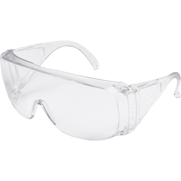 ochranné brýle s čirým polykarbonátovým zorníkem třídy 1F panoramatického tvaru a možností nasazení na dioptrické brýleSpecifikace pro Brýle ochranné Basic
