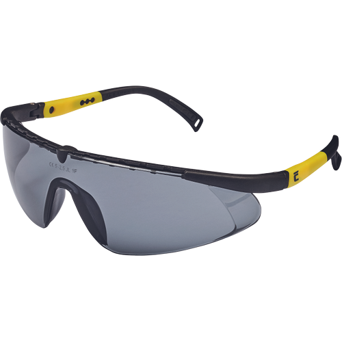 Brýle sportovního vzhledu optické třídy 1 s polykarbonátovým zorníkem s úpravou proti poškrábání a orosení (třída F dle normy EN 166), ochranou proti nárazu s malou energií a nastavitelnou délkou stranic. Žlutý zorník má ochranný filtr proti UV záření dle normy EN 170, šedý zorník má ochranný protisluneční filtr dle normy EN 172.Specifikace pro Brýle VERNON kouřové