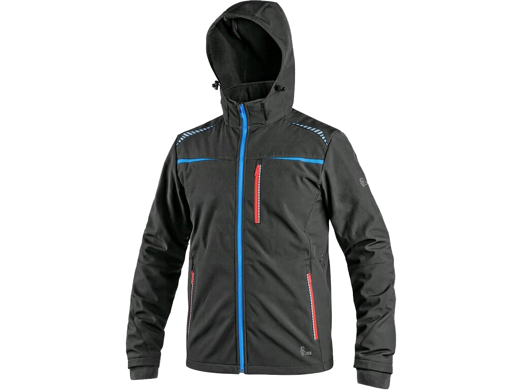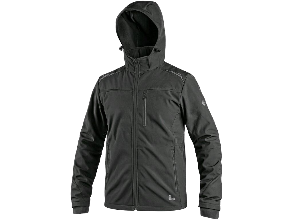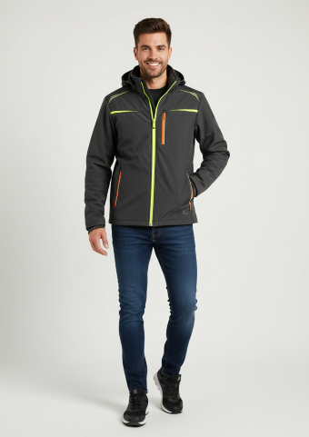 Pánská softshellová bunda s odepínací kapucí, odolná proti vodě a větru, zapínaní na zip.