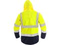 Výstražná, softshell bunda, odolná proti vodě a větru, odepínací kapuce, rukávy zakončené regulovatelnou manžetou, TPU membrána,