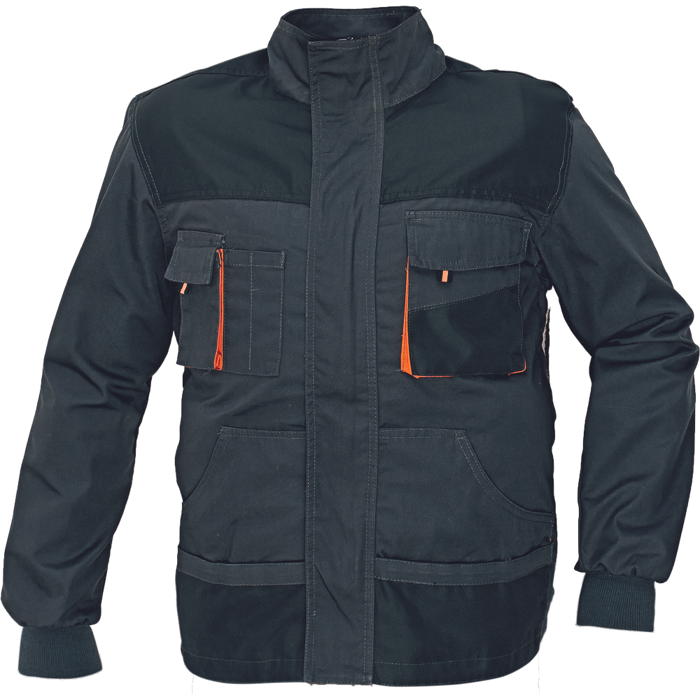 Kvalitní pracovní monterková bunda, moderní střih, vkusně barevně kombinována a vyztužení v ramenou, zapínání na zip a límeček na suchý zip. Rukávy jsou zakončeny stahovacím lemem.