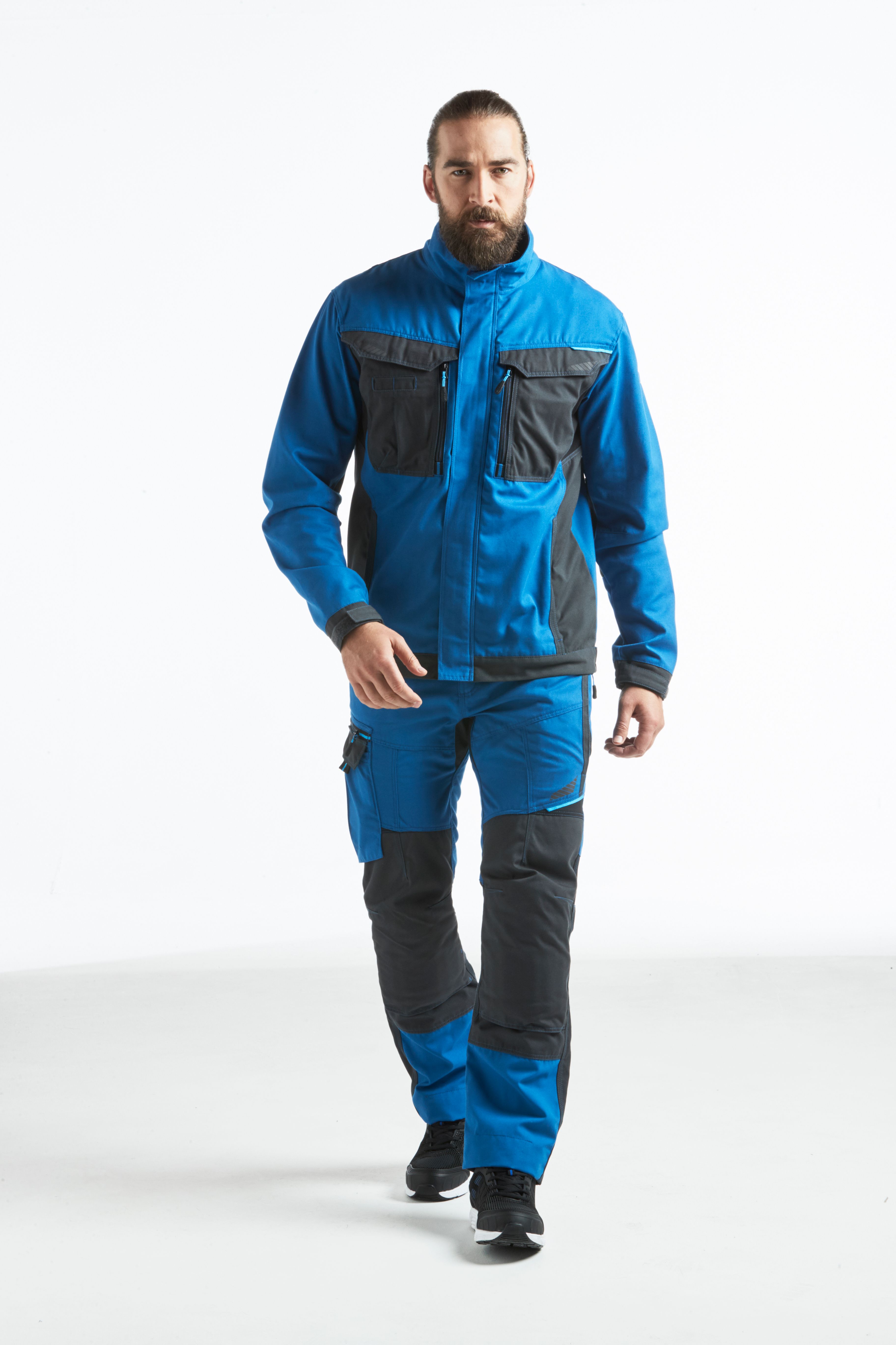 Pracovní bunda je vyrobená z odolné polybavlněné tkaniny. Multifunkční prvky, jako je napínací obložení, poskytují vynikající komfort a flexibilitu v klíčových oblastech pohybu. Dalšími vlastnostmi jsou technologie Ezee Zip™