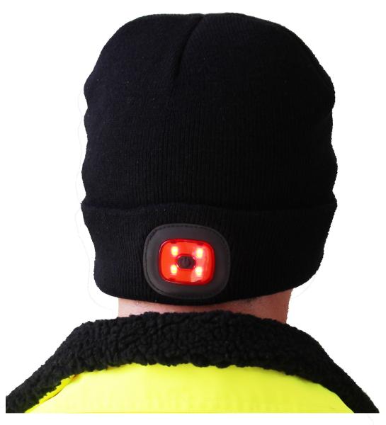 Tato výkonná čepice má dvě odnímatelné LED světla na přední a zadní straně pro celkovou viditelnost. Dobíjecí LED diody mohou být nabíjeny v USB portu nebo nabíječkou smartphonu. Ideální pro pěší, cyklisty nebo ty, kteří pracují v podmínkách slabého osvětlení.