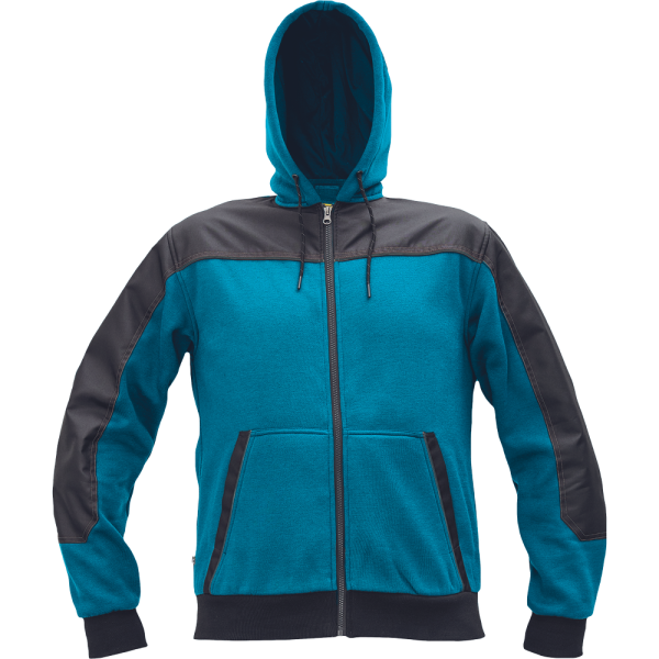 Pánská celopropínací mikina na zip s kapucí; zesílená oblast ramen a loktů z materiálu Oxford; 2 přední klokaní kapsy; kontrastní paspulky; elastické žebrované náplety na rukávech a spodním obvodu; poutka na přichycení do Cremorne zimní bundy.Specifikace pro CREMORNE mikina s kapucí