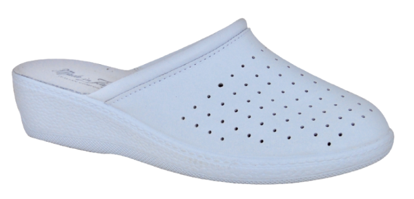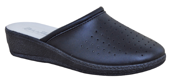 Komfortní obuv s koženou stélkou a perforovaným uzavřeným koženým svrškem.