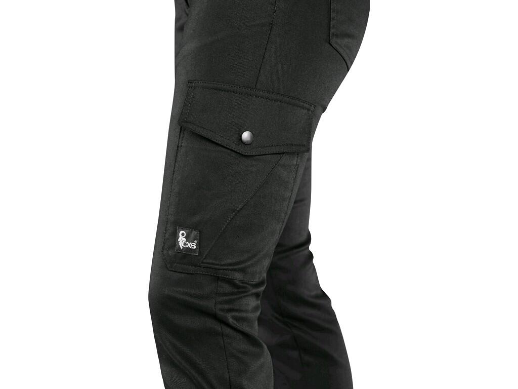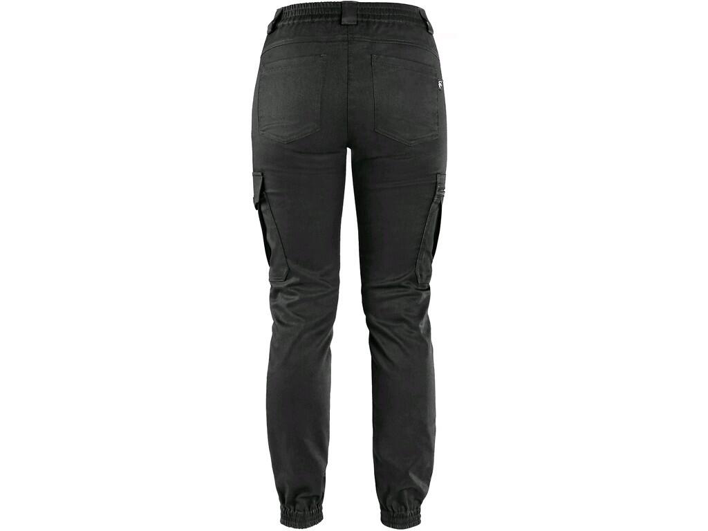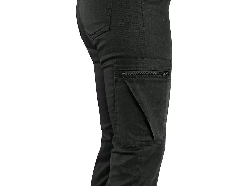 Dámské cargo kalhoty vyrobeny ze směsi bavlny a vlákna Sorona® firmy DuPont - vysoce odolného vůči skvrnám, vyznačujícího se vysokou pevností a tuhostí. Díky tomuto vláknu je materiál měkký, pružný a lze jej prát na teplotu 60 °C.