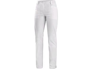 Dámské pohodlné kalhoty, pas částečně elestický s poutky na opasek, 2 přední našité kapsy, zadní lištová kapsa, dole boční rozparek. ZDE naleznete tabulku velikostí.Specifikace pro Dámské kalhoty CXS ERIN