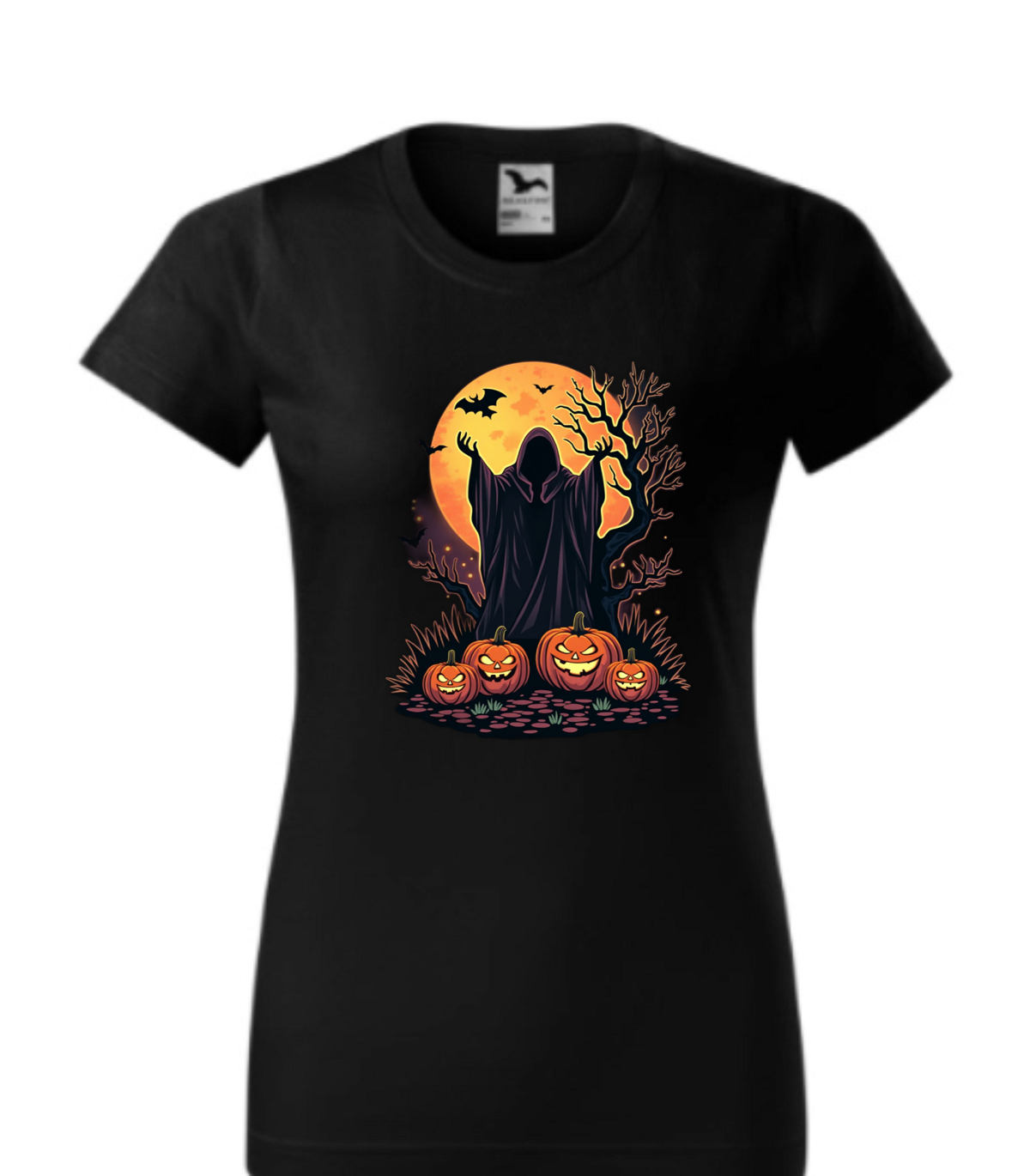 Dámské tričko se strašidelným  halloweenským motivem, vyrobené ze 100% bavlny pro maximální pohodlí.