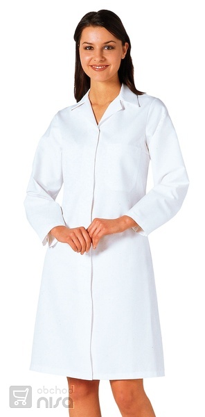 Ideální pro potravinářský průmysl, tento plášť poskytuje praktické možnosti pro ženy. Vnitřní kapsa na hrudi, dámský střih.