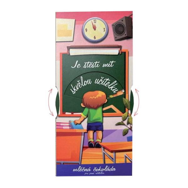 Skvělá mléčná dárková čokoláda pro paní učitelku od chlapečka s interaktivními prvky, která zahřeje srdce a rozveselí její smysly. Sladký dárek paní učitelce za důležitou práci, která je velmi ceněná.