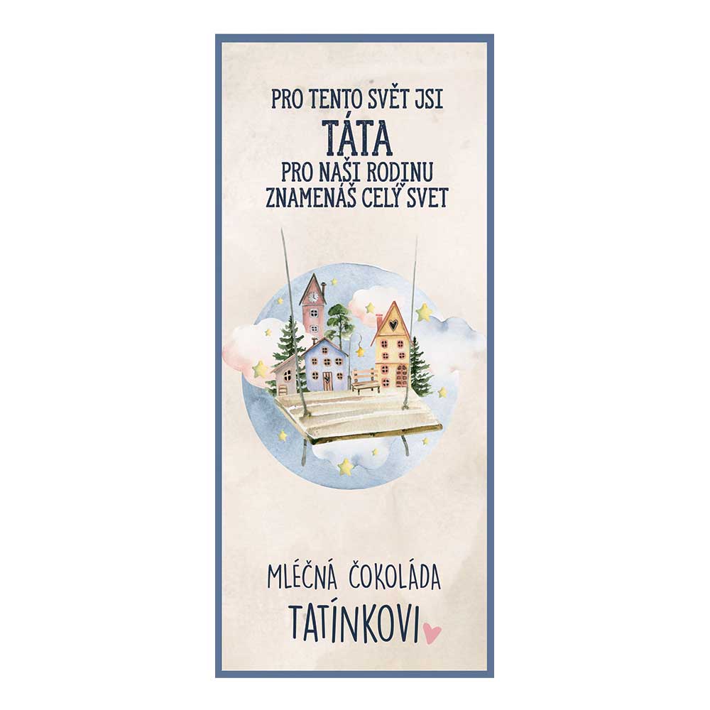 Dárková mléčná čokoláda pro vaše nebližší – Táta. Sladký čokoládový dárek pro tatínky k narozeninám, svátku nebo pro radost. Náš sladký dárek to řekne za vás.