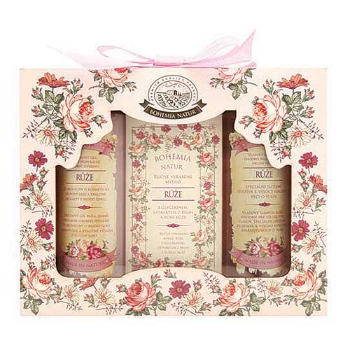 Dárkový kosmetický balíček Bohemia Natur – růže – sprchový gel 100 ml, toaletní mýdlo 100 g a vlasový šampon 100 ml