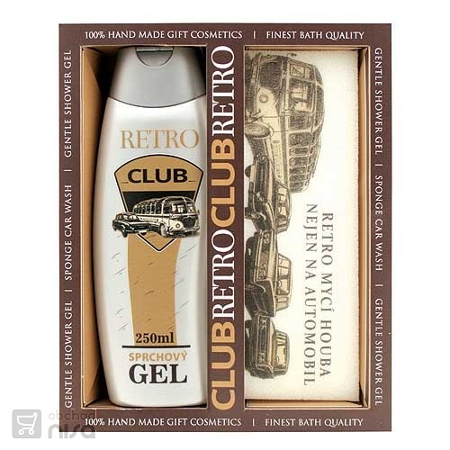 Dárkové balení pro opravdové muže. Retro sprchový gel 300 ml a retro mycí houba nejen na automobil.
