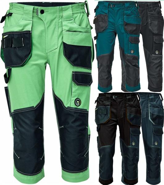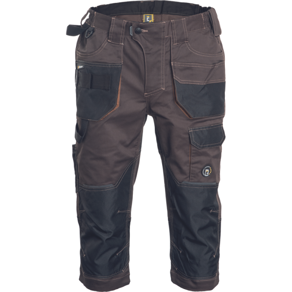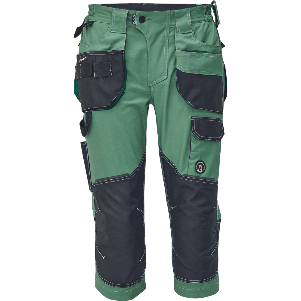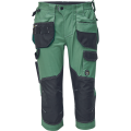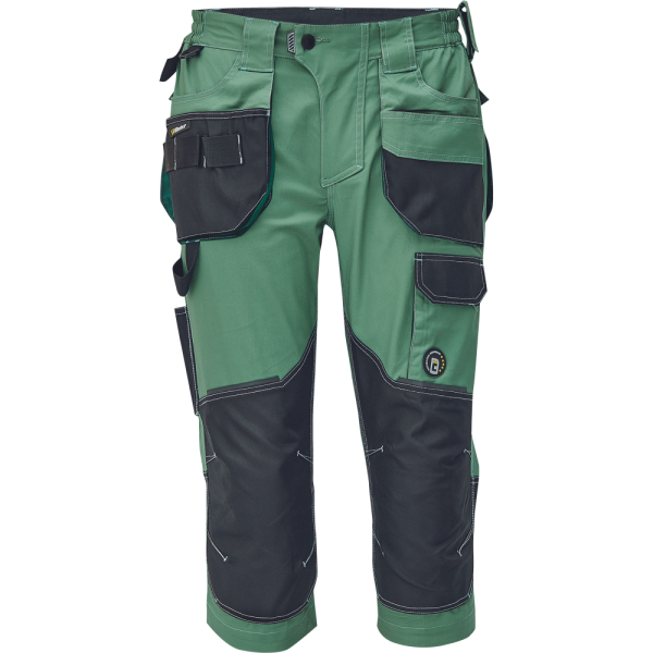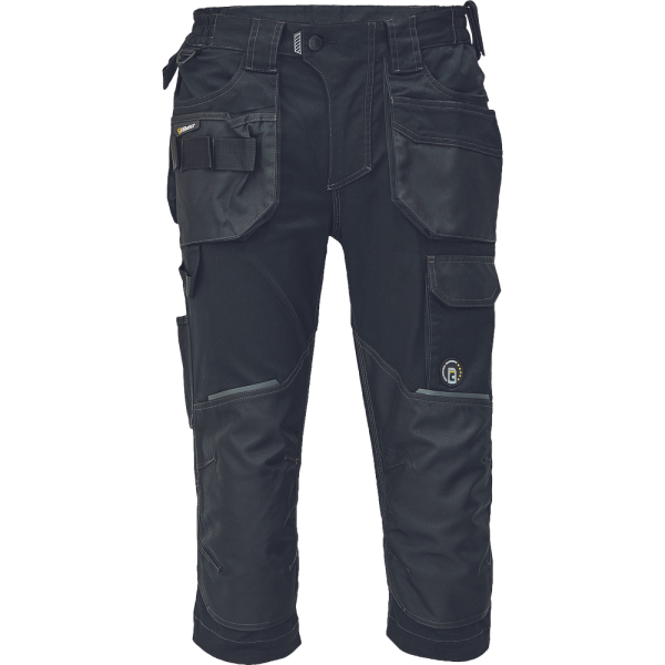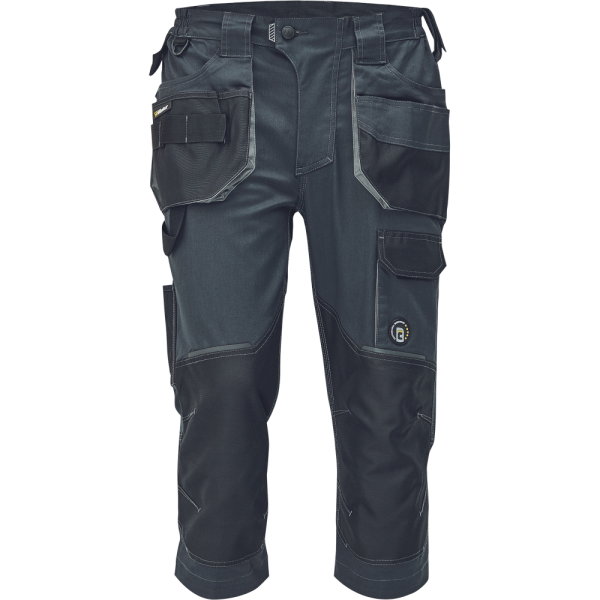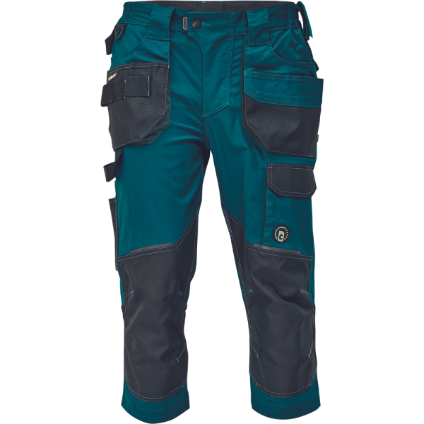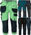 Pánské pracovní kalhoty.Elastický inovativní materiál TRIFIBETEX; ergonomický střih; snížený pružný pas; odolné trojité prošití nohavic a sedu; zesílená kapsa na nákoleníky z materiálu Oxford; prostorné multifunkční přední kapsy s poutky na nářadí; 2 zadní kapsy s klopou zesílené Oxfordem; stehenní kapsa na telefon s klopou a zapínáním na suchý zip; kapsa na metr a nůž; poutko na kladivo; "D" kroužek; poutko nanářadí v pase; originální zpracování zapínání kalhot; reflektivní prvky v barevném odstínu
