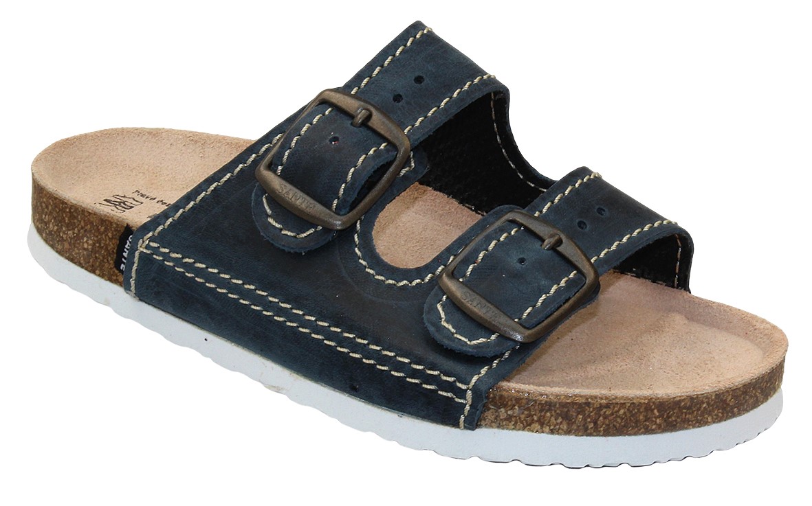 Dětské zdravotní pantofle z prémiové kůže s anatomickou stélkou, která podporuje správný vývoj kleneb nohy a účinně absorbuje nárazy při chůzi. Vyrobeno v České republice s nastavitelnou šířkou pro maximální pohodlí a zdravé dýchání nožiček.