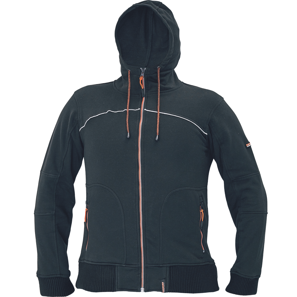 Moderní pánská mikina s dvoubarevným zipem; 2 přední kapsy na zip; reflexní pruh na zádech.Najděte svoji velikost