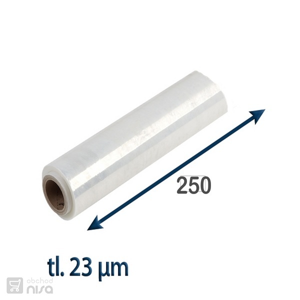 Průtažná strečová fólie má vynikající schopnost prodloužení, odolnost proti přetržení a elastickou paměť. Spojením všech těchto vlastností a schopnosti lepkavé přilnavosti na spodní straně fólie docílíte vynikajícího obalení palety či kartonu. Stretch fólie se velmi dobře přizpůsobí formě baleného zboží a dokonale ho tak chrání nejen před mechanickým poškozením, ale i před vlhkostí, špínou a prachem. Stretch fólie jsou šetrné k balenému zboží i k životnímu prostředí. Jsou ekologicky nezávadné a plně recyklovatelné.Specifikace pro fixační fólie 250/23my
