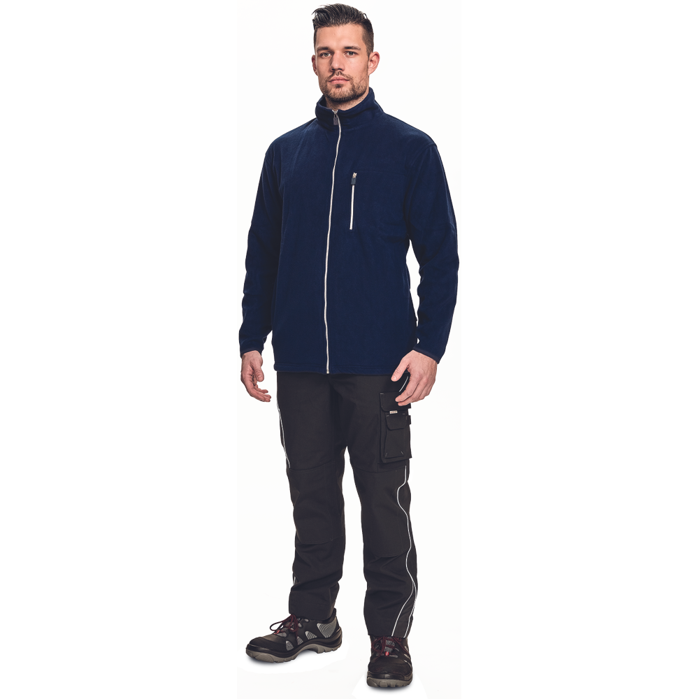 Ušita ze 100% polyesteru. Zapínání na zip, na bocích stahovaní na šňůrku. Praktická kapsa na prsou a na bocích. Vhodná pro volný čas, sklady, administrativu, dopravu aj. ZDE naleznete tabulku velikostíSpecifikace pro Fleecová bunda KARELA tm.modrá