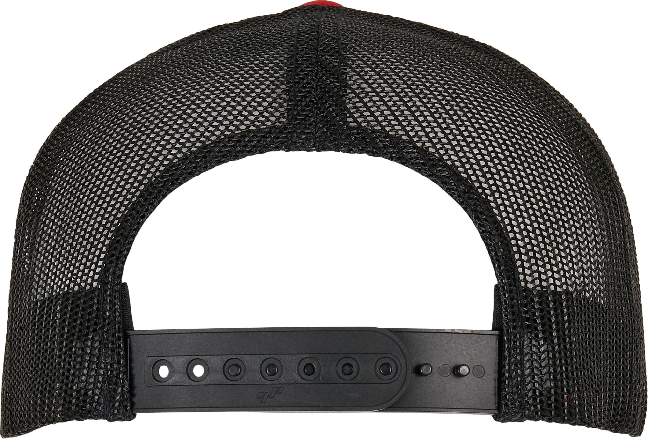 8 ozdobných švů na kšiltu, zadní strana ze síťoviny, 6 obšitých větracích otvorů, plastové zapínání tón v tónu