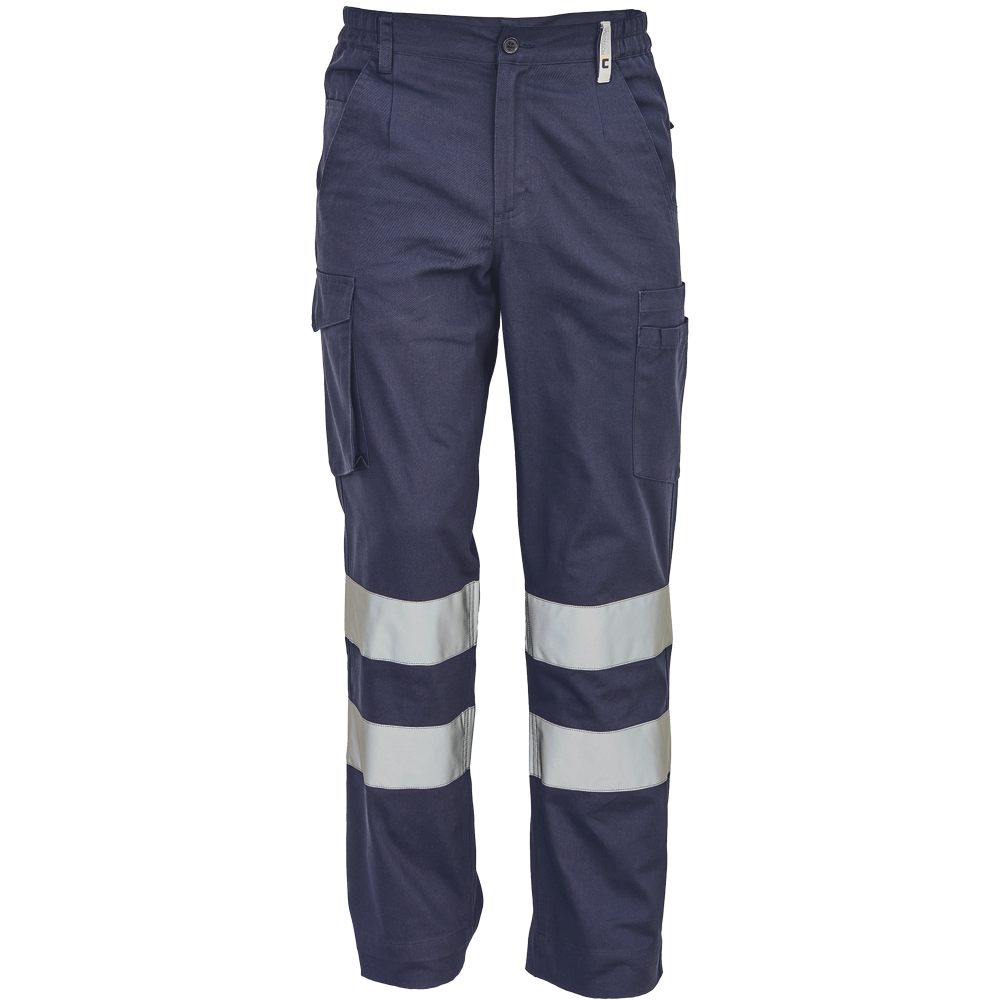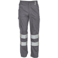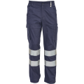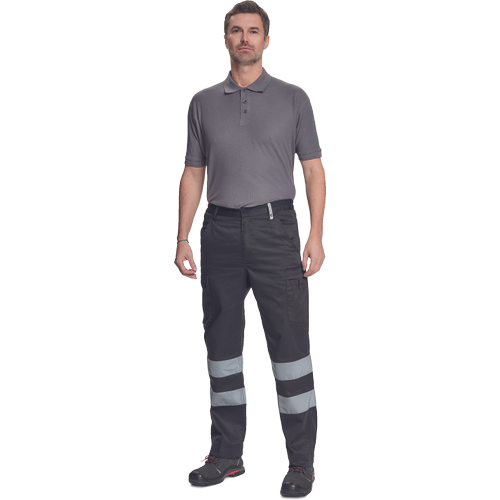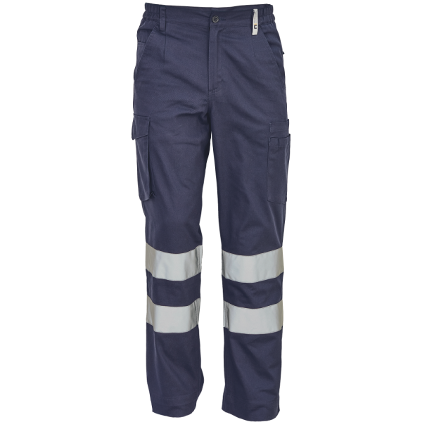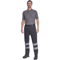 Pánské lehké pracovní kalhoty s reflexními pruhy a elastickým pasem; 2 boční kapsy; 1 kapsička na mince; 2 stehenní kapsy,;2 zadní kapsy.