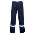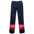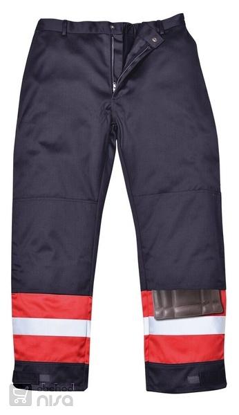 Reflexní pruhy s vysokou viditelností dvakrát prošité. Trojité prošití oděvu, reflexní pruhy na nohavicích, kapsy na kolenní vložky, kapsa na metr, přední zip. Nastavitelná spodní část nohavic.