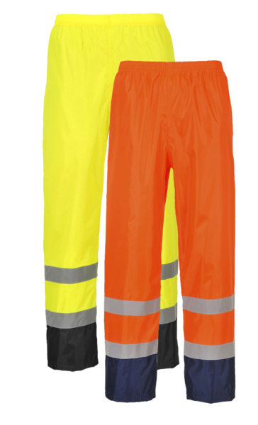 Kalhoty do deště Hi-Vis Classic Contrast - lehké a praktické kalhoty poskytují komfort a ochranu proti nepříznivým povětrnostním podmínkám. Pas s gumou pro pohodlí a volnost pohybu, boční otvory pro snadný přístup, nastavitel