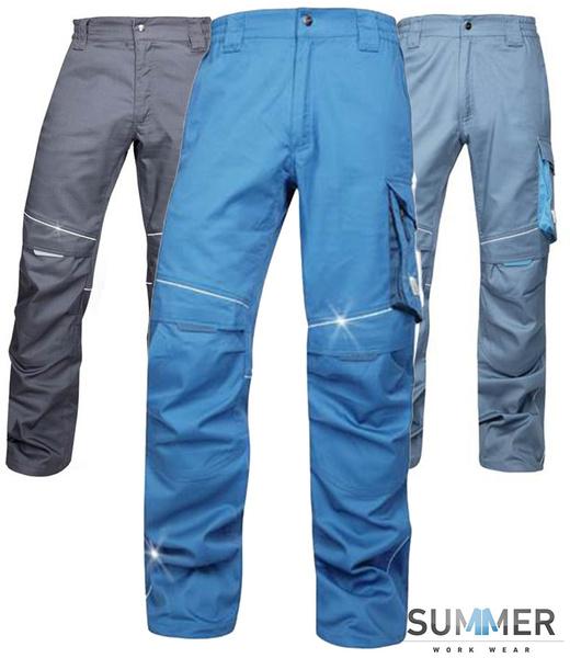 Reflexní prvky pro zvýšenou viditelnost a bezpečnost, reverzní zipy pro snadnou manipulaci a prostor pro nákoleníky pro další ochranu. Vyrobena z odolné směsi polyesteru a bavlny, ideální pro použití v teplém prostředí.