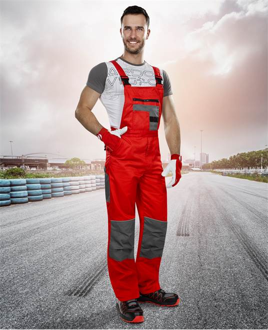 Kalhoty jsou vybaveny elastickými šlemi a pružným pasem, díky čemuž neomezují v pohybu při práci a plně se přizpůsobí šířce pasu. Na boční části disponují knoflíky, lacl lze zapnout pomocí plastových přezek. Univerzální a mužské postavě lichotivý střih dokonale padne každému.