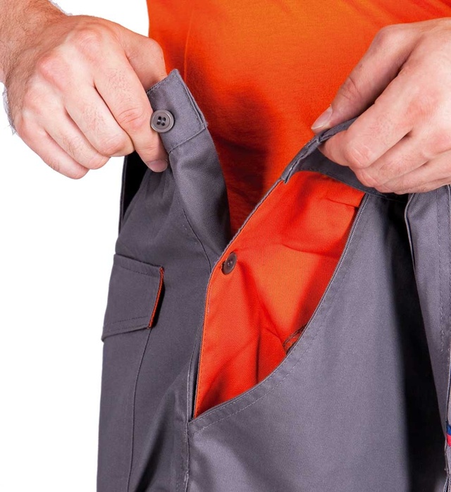 Montérkové kalhoty s laclemjsou ušity v moderním střihu a z velmi kvalitního materiálu. Pracovní kalhoty jsou vybaveny několika praktickými kapsami.