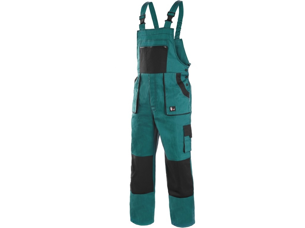Kalhoty s laclem LUX, pohodlné pracovní kalhoty s laclem, zdvojená látka a prošívání sedu, zajímavé střihové provedení kapes a laclu, zesílená kolena, dvě zadní kapsy. prodložené na výšku 194 cm