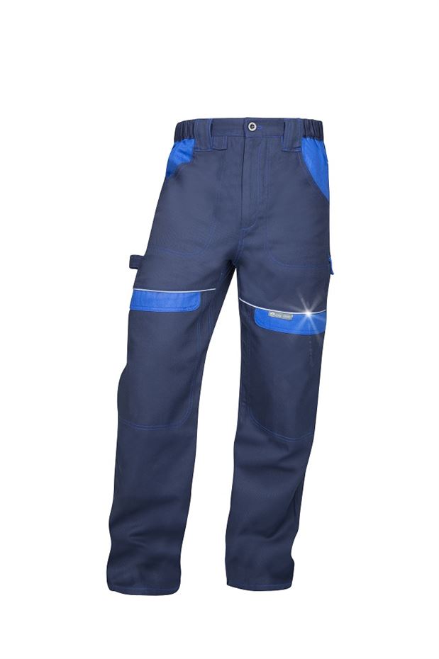 Pánské montérkové kalhoty z kolekce COOL TREND s prodlouženou délkou 194 cm jsou vyrobeny z kvalitní a vysoce komfortní 100 % bavlny, která se díky prodyšnosti a pevnosti hodí i do těžkých pracovních podmínek. Pohodlný sportovní střih a praktická výška kalhot do pasu neomezují v pohybu. Zapínání je na zip a knoflík, v pase jsou navíc kalhoty vybaveny gumou pro pohodlné nošení a pevnými poutky pro upevnění textilního pásku s plastovou sponou.