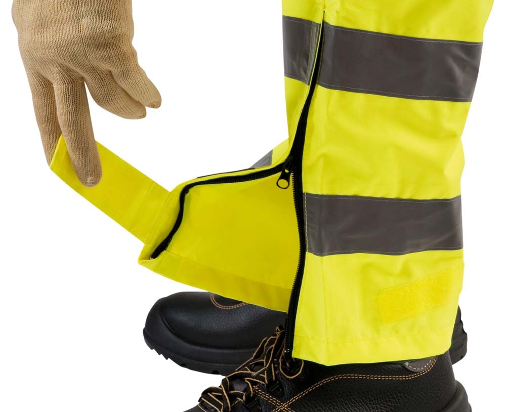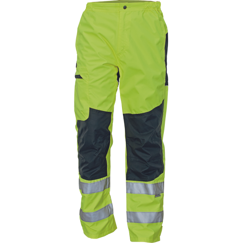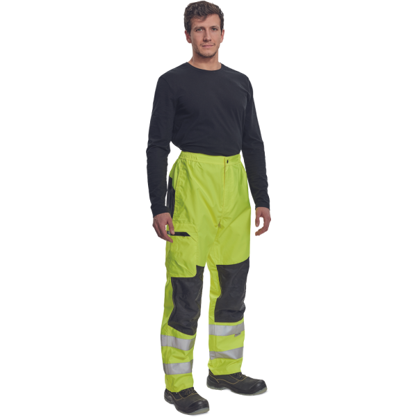 Reflexní kalhoty do pasu, 100%, odolnost proti průniku vody, paropropustnostné, podlepené švy, výstražný oděv s vysokou viditelností, barva: žlutočerné