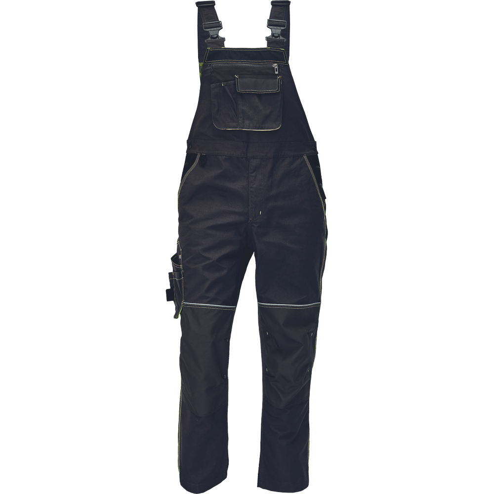 pánské pracovní kalhoty s laclem • elastické šle a pas • 2 hluboké postranní kapsy • 1 multifunkční kapsa na straně nohavice • 1 nakládaná multifunkční náprsní kapsa na laclu • D koužek pro přichycení identifikační karty • 2 nakládané zadní kapsy s patkou • zesílená oblast kolen s možností vkládání kolenních výztuhzáložka na nohavici umožňující prodloužení délky až o 5 cm • zesílená zadní strana spodku nohavice • dekorativní prošití a kontrastní prvky v hi-vis barvě