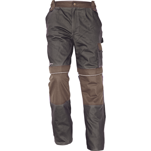 pracovní kalhoty pohodlného střihu a vysoké odolnosti, reflexní doplňky, zesílená zdvojená kolena pro vložení nákoleníkůNajděte svoji velikost