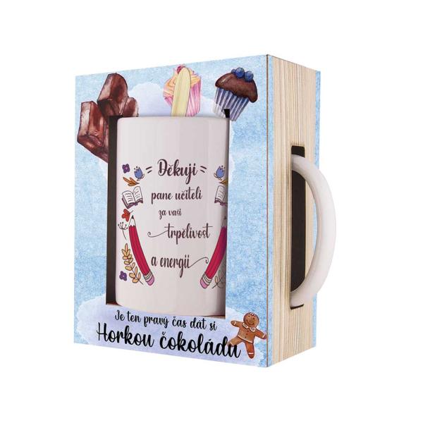 Dárkové balení keramického hrnku a horké čokolády 27 g k pro učitele přípravě oblíbeného teplého nápoje. Ideální dárek pro učitele jako poděkování za jejich nedocenitelnou práci.