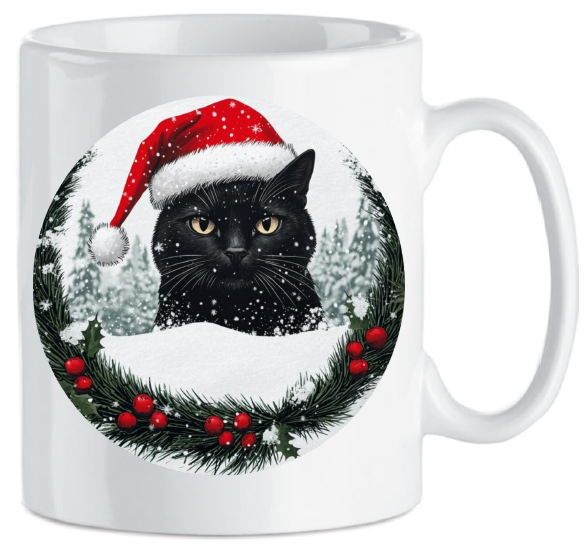 Představujeme vám jedinečný hrnek s vánočním motivem černého kocoura! Tento přítulný parťák, v roztomilé vánoční čepičce rozněžní každého milovníka koček.