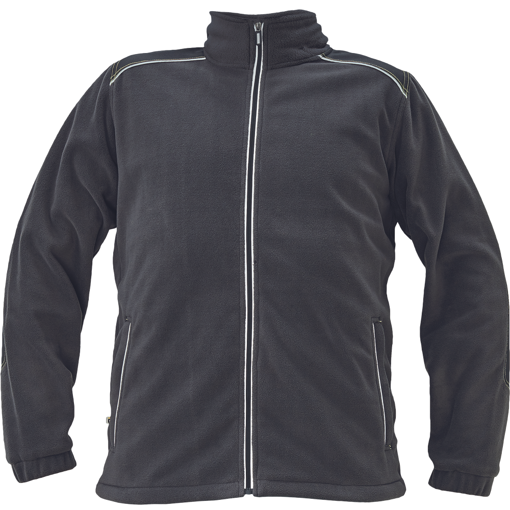 Fleecová celopropínací bunda se stojáčkem z materiálu s antipilling úpravou; zesílená oblast ramen a loktů; reflexní paspulka lemující sedlo a lištové kapsy; stahovací šňůrka s brzdičkou na nastavení šíře spodního obvodu; dekorativní prošití v kontrastní HI-VIS barvě.