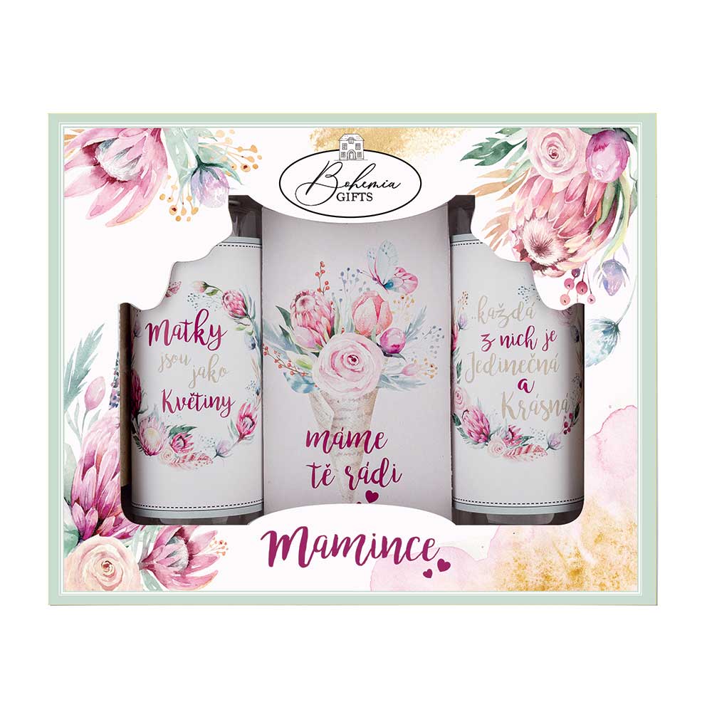 Dárkový kosmetický balíček pro maminku. Kosmetická sada mamince obsahuje sprchový gel, vlasový šampon a ručně vyráběné mýdlo. Balíček je krásný dárek pro maminku k narozeninám, svátku nebo k Vánocům.