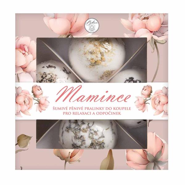 Kosmetický balíček pralinky do koupele pro maminku – 4x šumivá bomba do vany 55 g