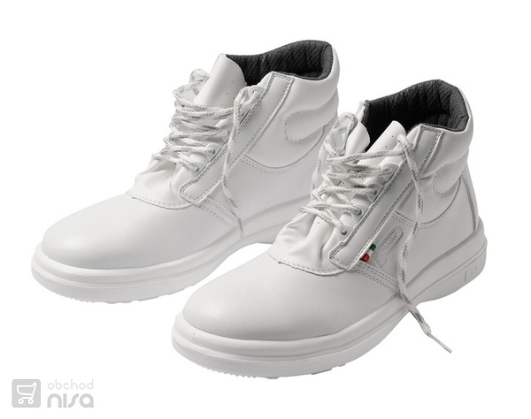 Bezpečnostní kotníková obuv s ocelovou tužinkou, antistatickou a protiskluzovou PU podrážkou rezistentní pohonným hmotám. barva: bílá.