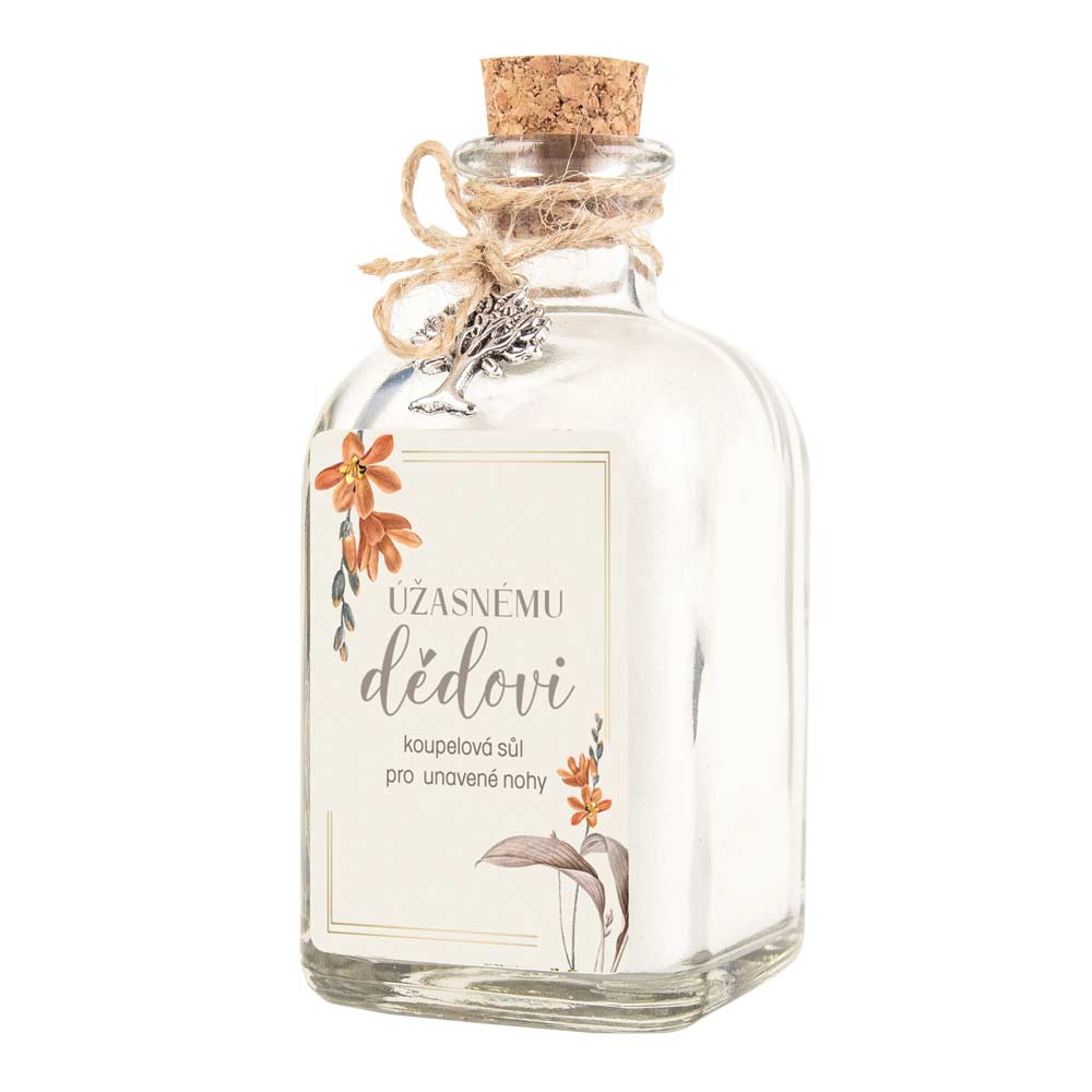 Koupelová sůl pro unavené nohy může být skvělým dárkem pro vašeho dědečka, kterému pomůže relaxovat a ulevit od únavy. Tato koupelová sůl je balena do silnostěnné skleničky s korkovým uzávěrem, potěší nejen obsahem, ale i kvalitním vzhledem.
