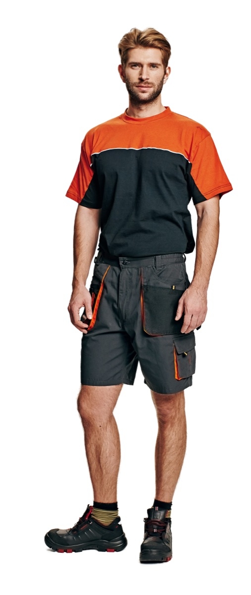 Montérkové krátké kalhoty, splňují ty nejvyšší požadavky na funkčnost a moderní vzhled. Jsou vyrobeny z velmi kvalitní tkaniny, materiál zaručuje minimální srážlivost a vyšší odolnost proti oděru.