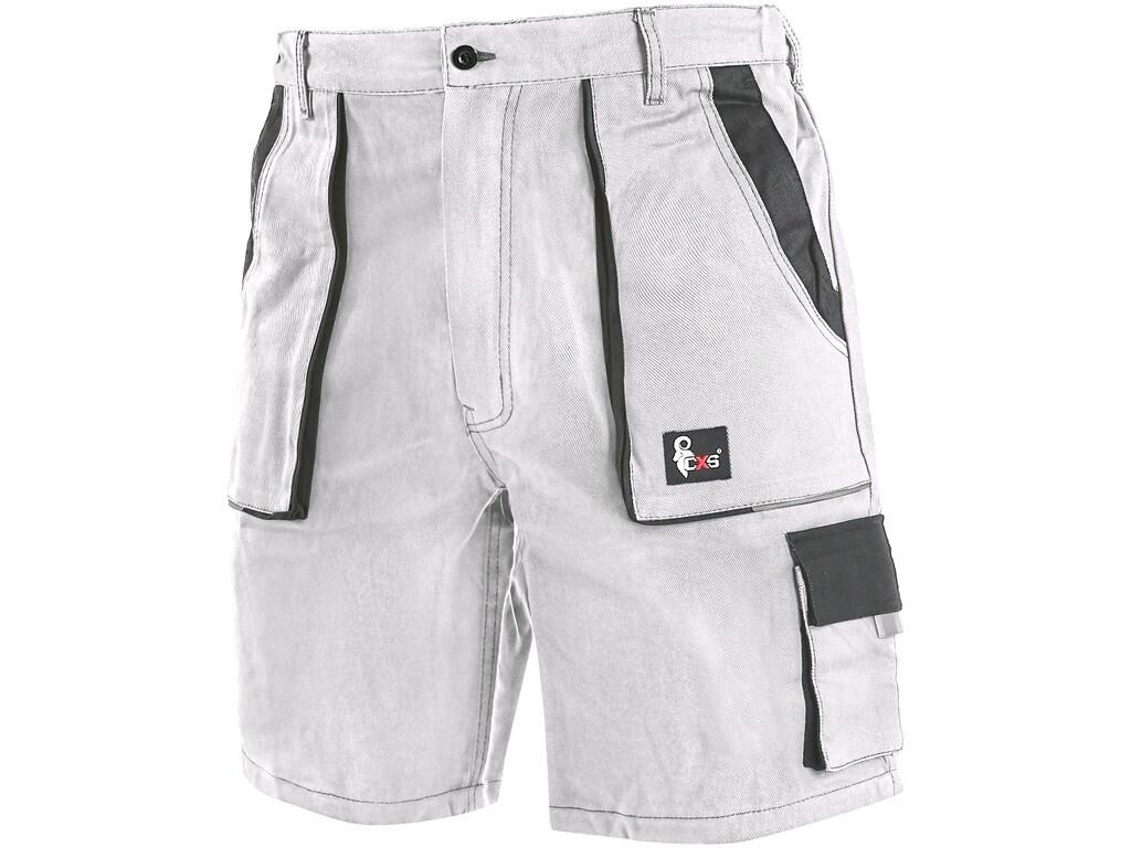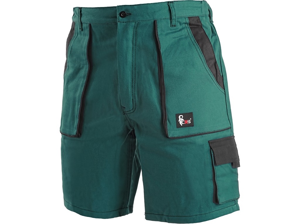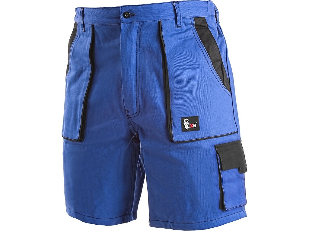 Pánské kraťasy, pevný pas vzadu do gumy s poutky na opasek, přední vakové kapsy, boční kapsy na metr a na mobil.