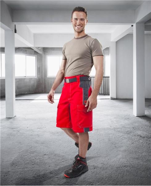Designové montérkové kraťasy z kolekce VISION dostupné v černém, šedém, modrém nebo červeném barevném provedení jsou vyrobeny z kvalitní směsi materiálů bavlny, polyesteru a kepru. Kepr je velmi odolný materiál využívaný zejména při výrobě pracovních oděvů nebo uniforem, ale znám je například také z denim jeansů. Střih těchto montérkových VISION kraťasů vychází ze střihu kalhot do pasu ARDON VISION a je velmi lichotivý jakékoli postavě. Délka je optimální po kolena a kalhoty jsou proto velmi praktické zejména do letních dní. Kraťasy jsou prošívány kontrastní nití, která dotváří celkový sportovní design.