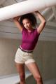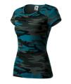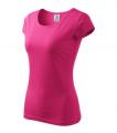 Dámské triko s velmi krátkým rukávem. Volný kulatý průkrčník s úzkým lemem ze shodného materiálu.