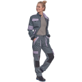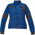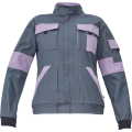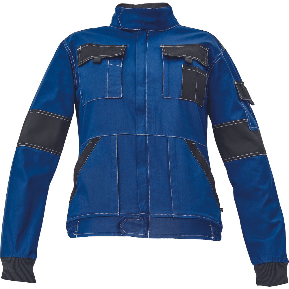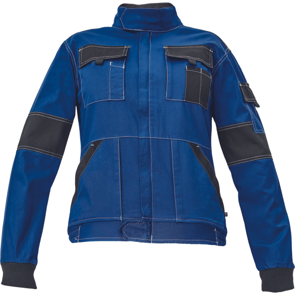 Dámská lehká pracovní bunda se zapínáním na zip krytým légou; 2 přední kapsy, 2 náprsní kapsy s klopou; 1 malá kapsa na levém rukávu; zesílení namáhaných míst loktů a ramen; pružné manžety rukávů a spodní obvod v pase.